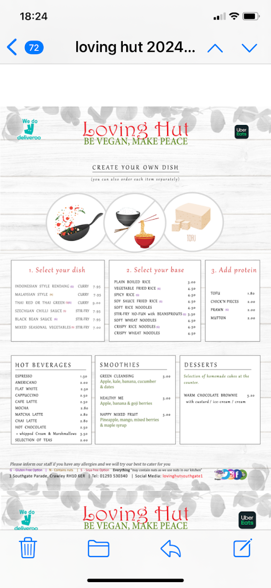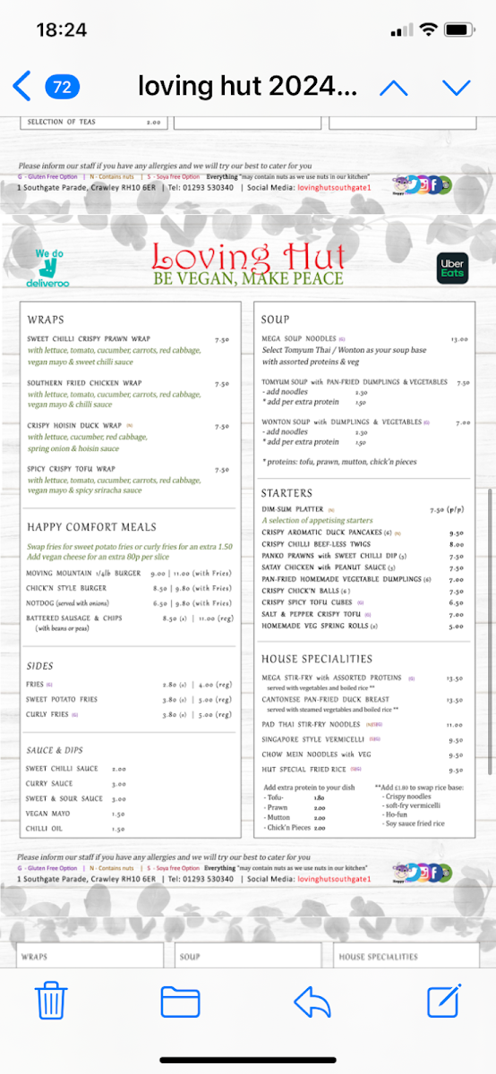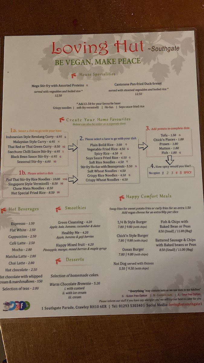 Welcome to Loving Hut, a hidden gem in Crawley located at Southgate Parade. This superb vegan café is renowned for its diverse menu that caters to all cravings, from light bites to hearty meals. Guests can savor the Dim Sum Platter or indulge in the popular Moving Mountain 1/4lb Burger and Chick'n Style Burger. Each dish is crafted with love, showcased by customer favorites like the Crispy Hoisin Duck Wrap and Spicy Crispy Tofu Wrap.